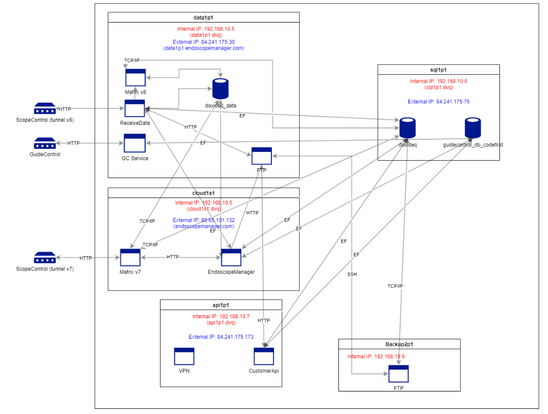 - data1p1.endoscopemanager.com (84.241.175.30) through SSH / port 22 (with tunnel version 8)